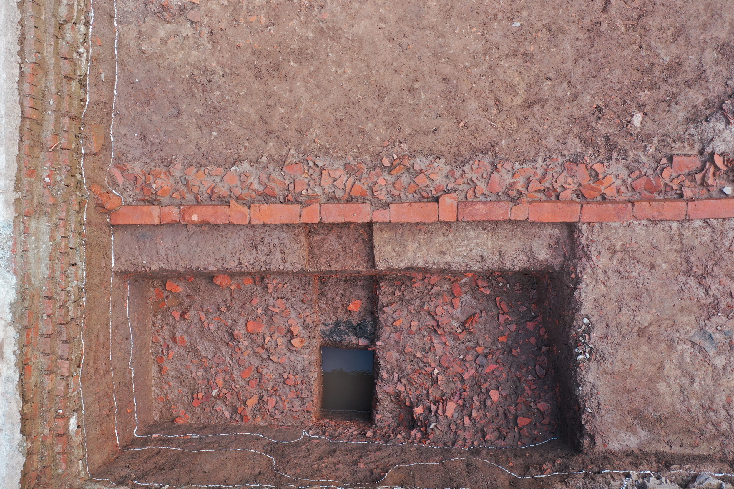 Các giai đoạn kiến trúc nằm dưới móng đền Trấn Vũ, Long Biên, Hà Nội (Ảnh: Ngô Cường)