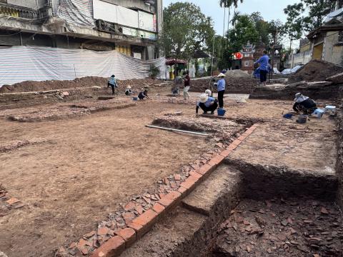 Khai quật, thăm dò khu vực nhà mẫu chùa Cự Linh, Long Biên, Hà Nội (Ảnh: Đoàn khai quật Viện KCH)